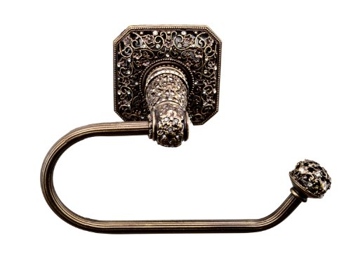 Carpe Diem Hardware 4057-3 Cab Juliane Grace Tissue Holder Right Made with Swarovski Elements, Antique Brass