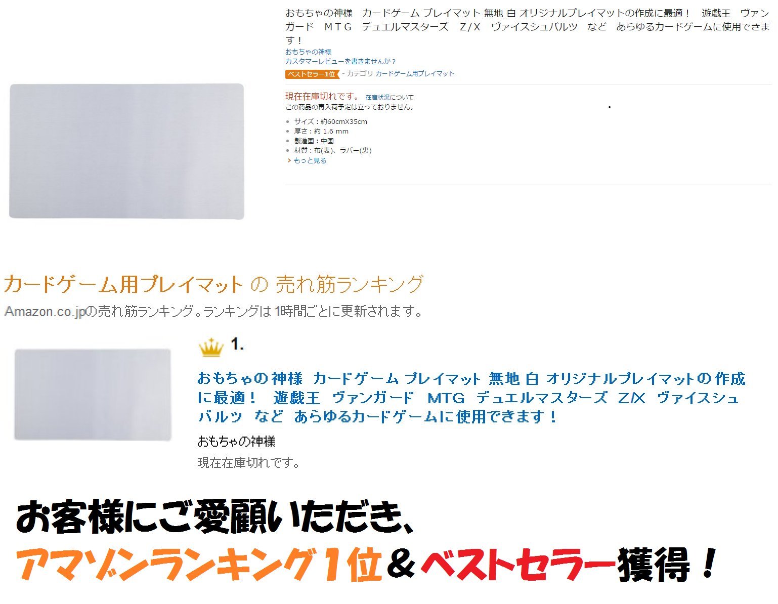 Ideal for the creation of God card game play mat plain white original play mat toy! Such as Yu-Gi-Oh Vanguard MTG Duel Masters Z / X Vice Black can be used for any card game!