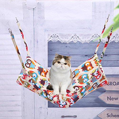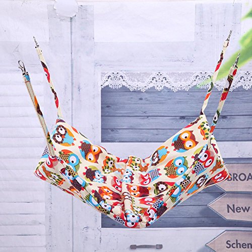 Features: Warm,soft,comfortable. High quality canvas and coral fleece material. Double-pocket design,cat hamster pet can hide inside to rest. Hang in a cage; under a chair; make a pet pad on the floor. Stainless steel hook, very durable. Suitable for cats and squirrels,let your pets sleep better.