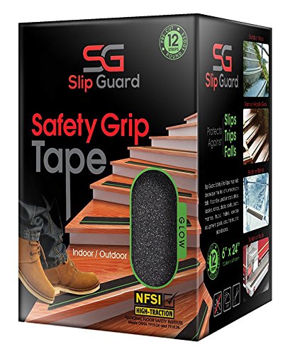 Slip Guard Non-Slip Tape, Glow Strip, 12 Pack, Weather Resistant, 6" x 24", Commercial Grade 80 Grit, Indoor & Outdoor Safety Anti Slip Tape, Glow