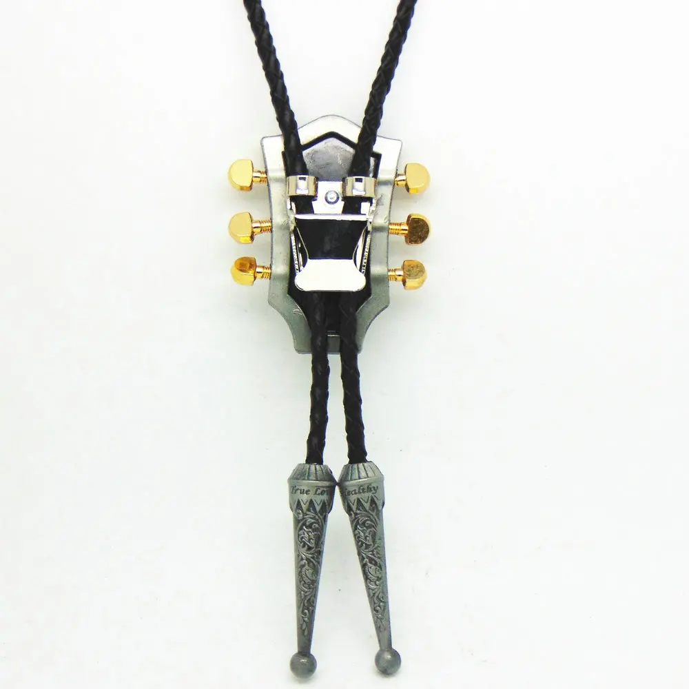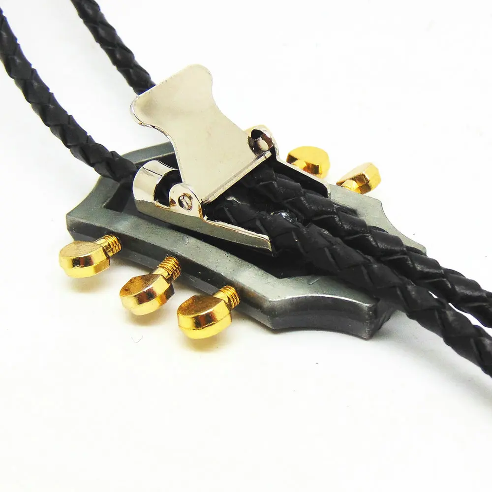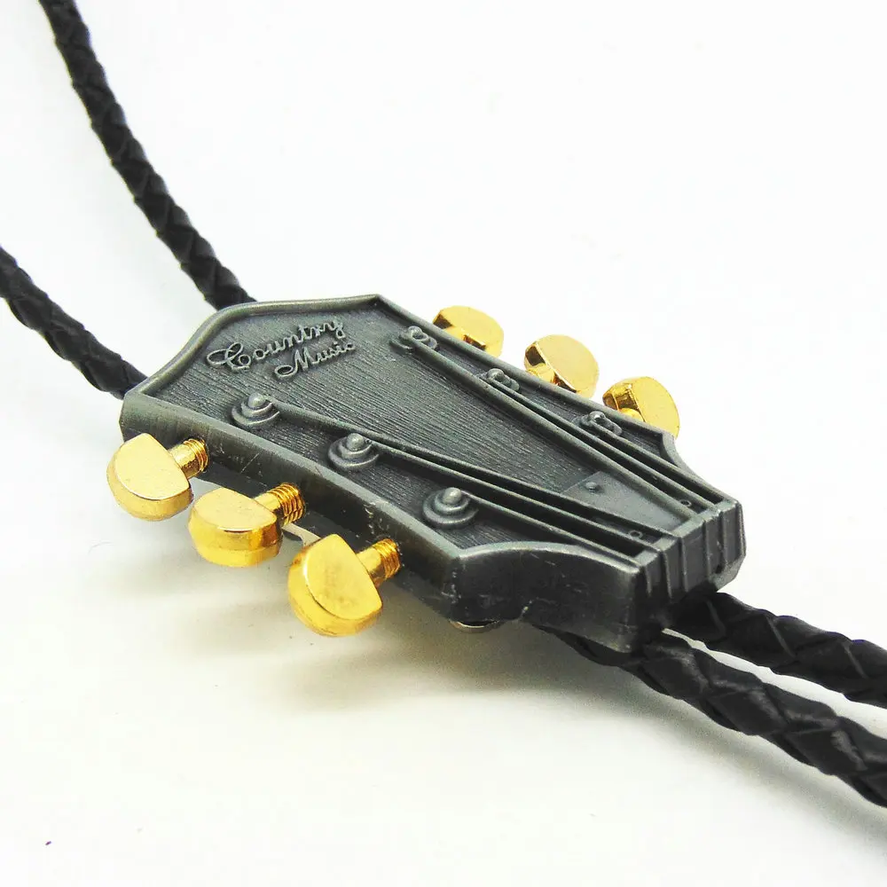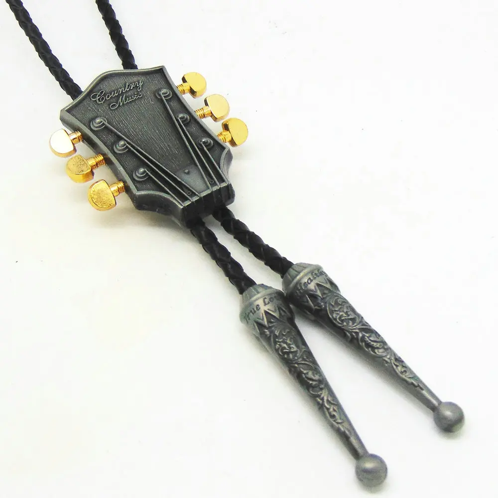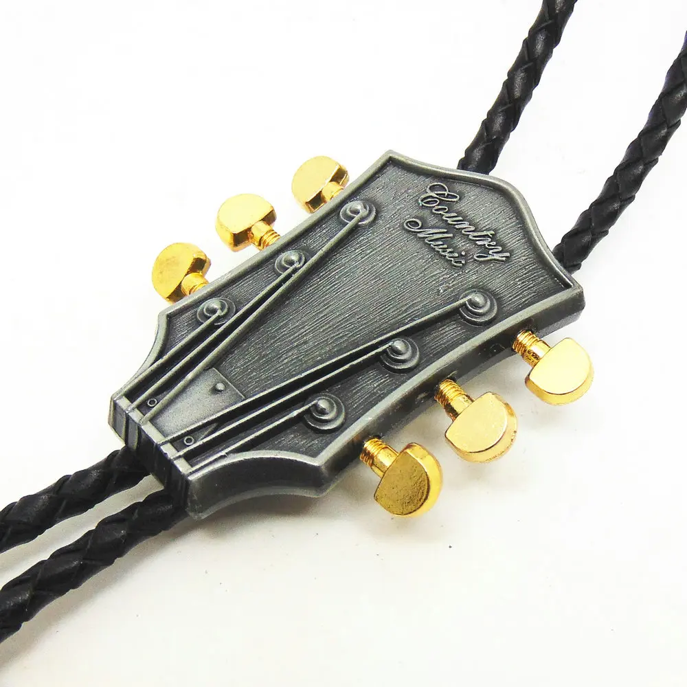 Item Type:Ties Department Name:Adult Ties Type:Neck Tie Gender:Men Style:Western bolo tie Size:One Size Pattern Type:Animal Model Number:6486 Material:Synthetic Leather Shape:Guitar Color:Antique silver Metal Material:Zinc Alloy Leather Material:Genuine Leather