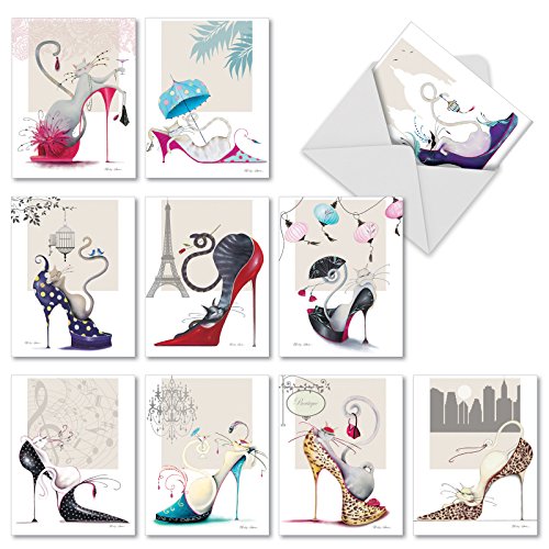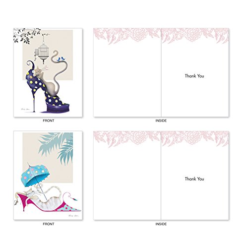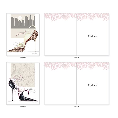Send a little gratitude with "catitude." These fun Thank You Note Cards feature stylish cats lounging with attitude on high fashion heels. There are many reasons to send a note of thanks someone's way, whether to acknowledge a gift, the fun you had at their house, or just for the special bond of friendship, do it with "catitude." These notecards look great framed, too! Try framing them individually, or grouping several in a collage frame, to create visually appealing wall decor.