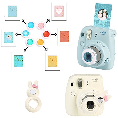 Fujifilm Instax Accessories: Brand SAIKA instax mini accessories kit fits for Fujifilm Instax Mini 8/ Mini 8+/ Mini 9 instant camera. This accessories bundle includes not only an exquisite Mini 8 Case but also other necessary accessories, as 1x Mini Photo Album, 1x Calendar Album, 1x Rabbit Close-up Selfie Lens, 6x Color Effect Filters, 1x Rainbow Shoulder Neck Strap, 1x Table Frames Set, 1x Wall Hanging Frames, 1x Film Decor Sticker Borders