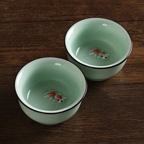 -. Title : 2Pcs 40ml GongFu Tea Chinese Longquan celadon Handmade 3D Fish teacup tea Cup