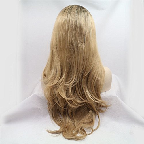 Xiweiya Long Natural Wave Ombre Brown Blonde Synthetic Lace Front Wigs Side Part Heat Resistant Fiber Hair Wigs For Women Replacement Everyday Wigs