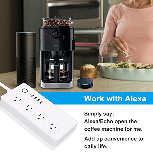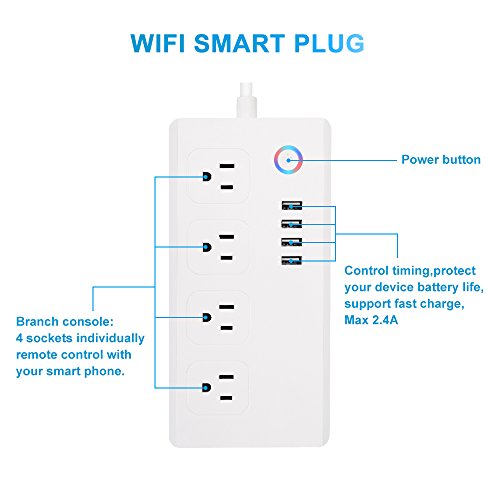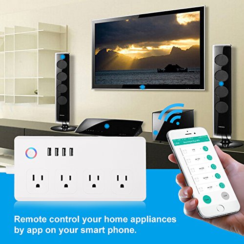 KEDSUM WiFi Smart Plug,Wireless Smart Socket Remote Control/Timer Via Smart Phone App, Work with Alexa,Google Home,No Hub Required,4 Socket 4 USB