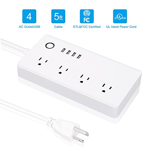 - ★4-plug Socket and 4-USB :smart power strip features 4 Super Charging USB ports with a max power output of 12W, so you can easily charge your cellphone along with other USB devices. The fastest possible charge speed up to 4 amps per port.Each socket is individual and the USB ports can be control together.