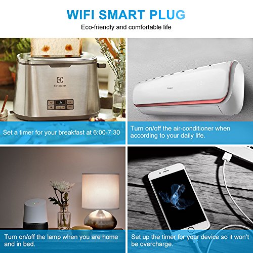 - ★Voice Control Your House: Simply connect your app and speak with Alexa or Google Home to control your appliances ON/OFF(Timer function is not available by voice control),enjoy your moment on time with your fancy experience with Alexa,Google Assistant.