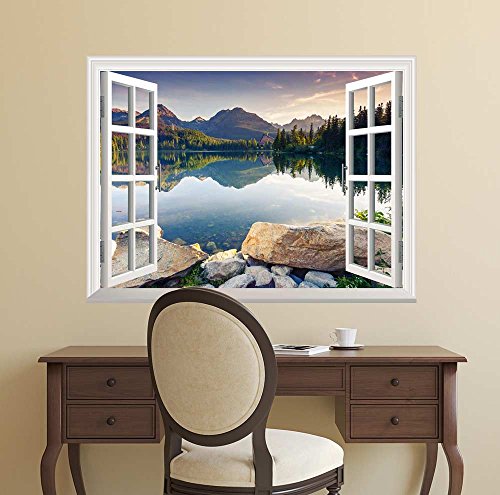Wall26® High Quality Removable Wall Sticker / Wall Mural - Peaceful Lake in Autumn | Creative Window View Wall Decor - 36"x48"