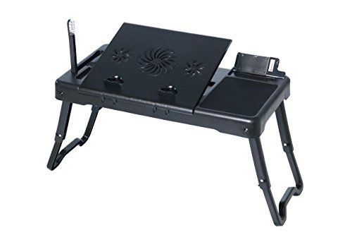 -. Binding : Office Product -. Brand : DG SPORTS -. Color : BLACK -. EAN : 0090125928327 -. Feature : NICE AND BIG Our 26" long by 13" wide worktop gives you more room and the 15" laptop area can fit most computers / Legs can be set to 2 different heights: 26" L x 13" W x 9.8" H (first height) or 26" L x 13" W x 15" H (second height) / STAY COOL WHILE YOU WORK Laptop stand has an integrated cooling fan that allows the heat from your computer to dissipate! No more hot, sweaty lap! / NO MORE EYE STRAIN! Detachable, adjustable LED light provides illumination for working in low light conditions + you con put a picture form you baby in the picture frame / PERFECT FOR TRAVELING Fold-out legs collapse to make it easy to take the desk with you on the go; Includes 4 USB ports for repowering your devices -. Label : DG SPORTS -. Manufacturer : DG SPORTS -. Model : DG-DESK-BLK-02 -. MPN : DG-DESK-BLK-02 -. PackageQuantity : 1 -. PartNumber : DG-DESK-BLK-02 -. ProductGroup : Office Product -. ProductTypeName : OFFICE_PRODUCTS -. Publisher : DG SPORTS -. Studio : DG SPORTS -. Title : Laptop Table Stand - Repositionable LED Light - Integrated Cooling Fan - with 4 USB Ports - 26" by 13" -. UPC : 090125928327