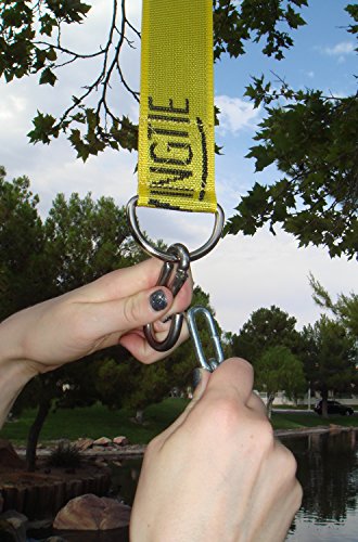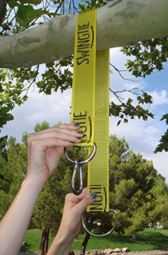 The Swing Tie is constructed out of heavy duty nylon which is the same material used for parachutes and safety harnesses providing you with top-notch security and durability. With Swing Tie's high grade stainless steel rings and carabineer, you can take confidence knowing that your Swing Tie will never rust, fade or be affected by unpredictable weather. This will allow you to keep your Swing Tie installed and completely functional year round to enjoy every season from the scorching summer afternoons to the crisp winter evenings! Swing Tie is adjustable to the height of your tree branch or overhang allowing you a level of customization to better reach your maximum comfort level. Swing Tie can be altered to hang down anywhere from 2 1/2 feet to a few inches, depending on the diameter of your branch.