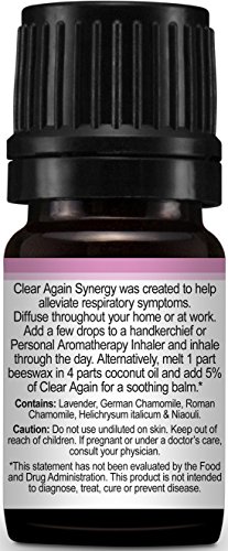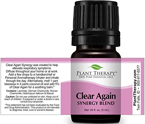 Plant Therapy Clear Again (Allergy Aid) Synergy Essential Oil Blend. Blend of: Lavender, German Chamomile, Roman Chamomile,...