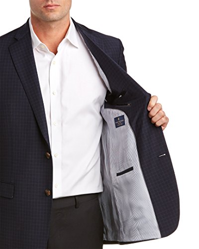 Feature : Color/pattern: navy / Approximately 29in from shoulder to hem / Measurement was taken from a size 40R and may vary slightly by size / Design details: notch lapel, button cuffs, dual front flap pockets, left chest pocket, side vented, four interior pockets, Explorer fabric is lightweight, wrinkle and water resistant, and moisture / Two-button closure