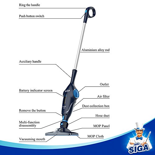 MR. SIGA imop Vacuum Cleaner Mop, Powerful and speed vacuum giving better Suction & longer usage time, Exchangeable head, 3 in 1 for use as Vacuum, Flat mop and the duster collector in height, Aluminium pole, lighter and stronger, NO seams connection, much safe, Professional Microfiber pad, dry wipes or either wet wipes available to Choose, suitable for all you needs, Design in lighter weight, much easier to control, easy assembly, one click ReleaseFeature