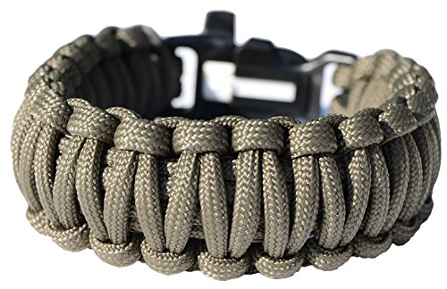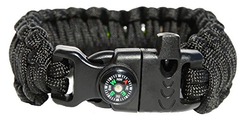 100% Handmade 550 Paracord Survival Bracelet with Fire Steel, Fire Tinder, Ceramic Knife, Rubber Band, Cleaning Pad, Fishing Line and complete Fishing Gear Including 2 weights, 2 floats, 2 hooks, 2 swivels, and two safety pins. This is a compete survival kit you wear on your wrist! Keep one in your car, your purse and your backpack in case of emergency. Better to have it than not in a time of need. High quality and inexpensive so grab several and stock up.Feature