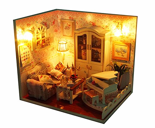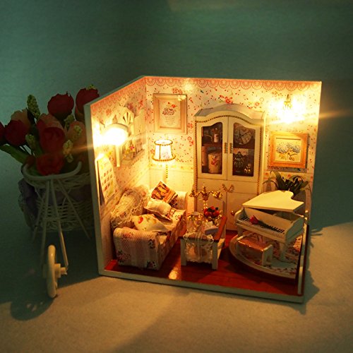 -. Title : Kits Wood Dollhouse Miniature DIY Dolls House Room with Furniture and Cover Handicraft Deeply love