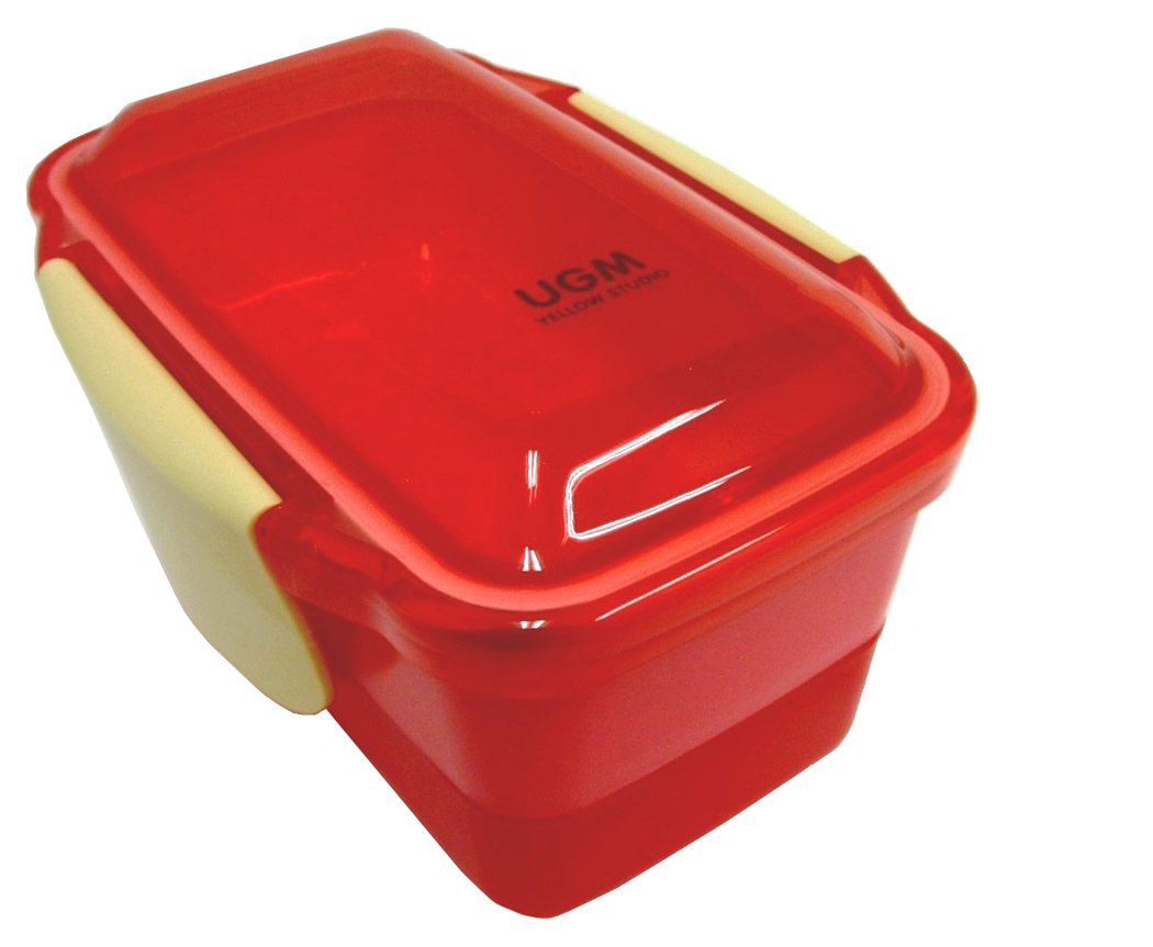 ● Two-stage lunch box featuring a slim shape that can be eaten with a domed lid and one hand