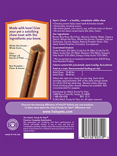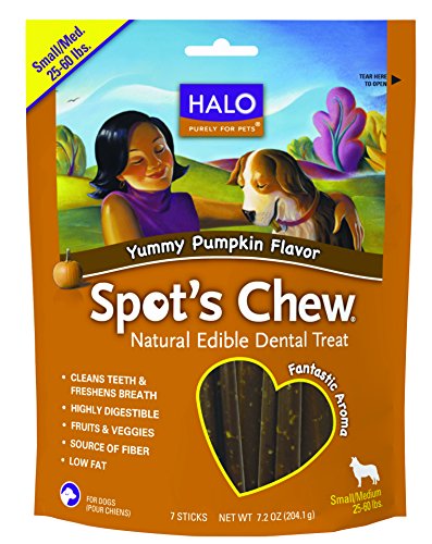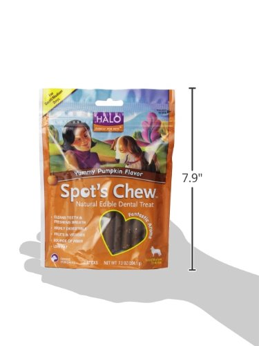 -. Title : Halo Spot’s Chew Holistic Dog Dental Treats, Yummy Pumpkin, 7.2 OZ of Dental Chews for Medium and Small Dogs, 7 Sticks of Natural Dog Treats