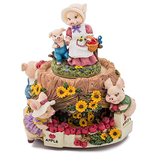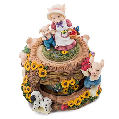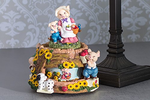 MOMMA PIG WITH CHILDREN AT MARKET ROTATING MUSIC BOX FIGURINE PLAYS TUNE TAKE ME HOME COUNTRY ROADS