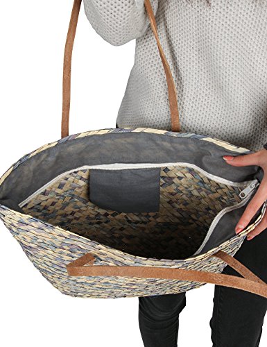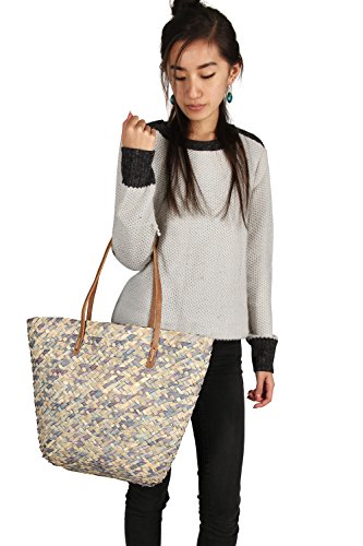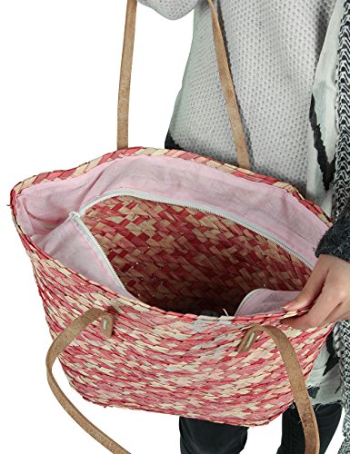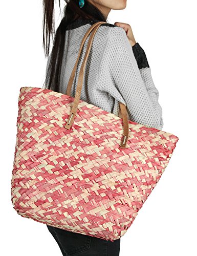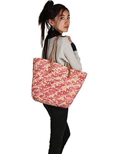-. Brand : Tribe Azure Fair Trade -. Department : womens -. Feature : Authentic Tribe Azure Fair Trade Hand Woven Straw Tote Bag / Soft Comfortable Leather Straps - ideal To Carry as Shoulder Bag or Carry by handles / Ideal for various uses including strolling along the beach, shopping, or just as an casual everyday bag / 17 inches Width by 12 inches Height - Strap drop 12 inches -. ProductGroup : Shoes -. ProductTypeName : HANDBAG -. Title : Women Straw Summer Beach Pink Shoulder Bag Handbag Tote With Leather Straps