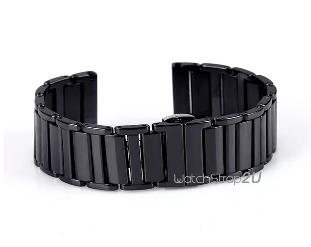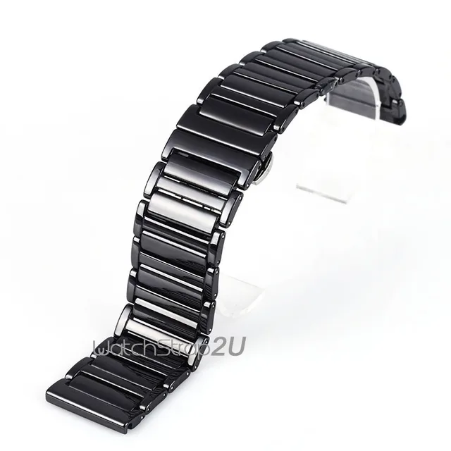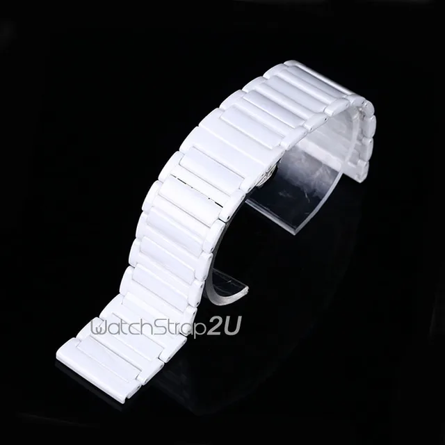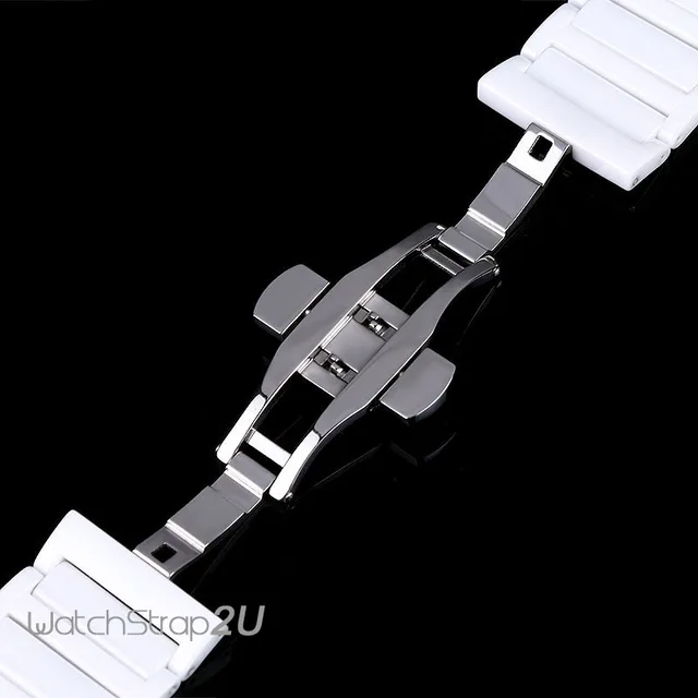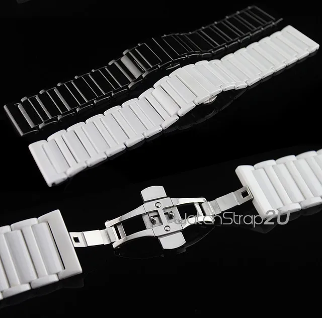 24 미리메터 블랙 화이트 세라믹 링크 시계 밴드 스트랩 나비 푸시 버튼 버클