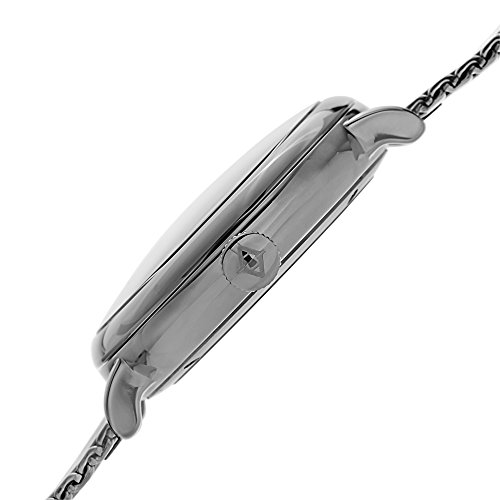 -. Feature : Stainless steel watch featuring date window at the 3 o'clock position with blue hands and hour markers on silver-tone sunray dial / Features push-and-slide clasp closure on mesh bracelet / Japanese-quartz Movement / Case Diameter: 46mm / Water Resistant To 99 Feet
