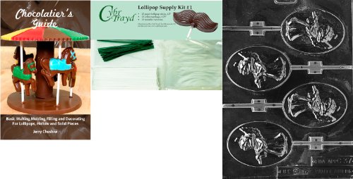 Cybrtrayd Oval Angel Lolly Chocolate Mold with Chocolatier's Bundle of 25 Lollipop Sticks, 25 Cello Bags, 25 Green Twist Ties and Chocolatier's Guide