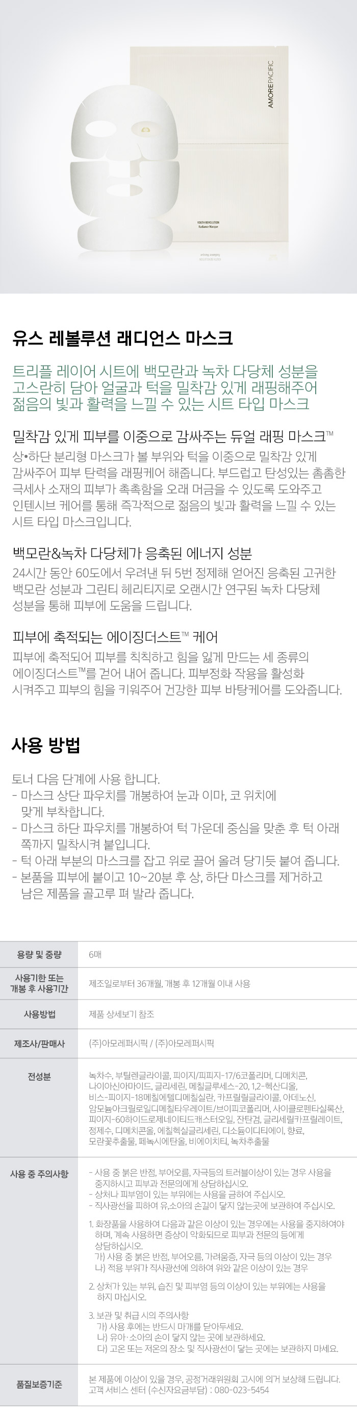 | 유스 레볼루션 래디언스 마스크 6매 (본품) ※구성품은 이미지 사진과 다를 수 있으며, 품절시 사전 예고 없이 변경될 수 있습니다.