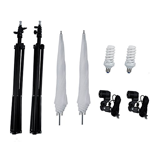 - Feature : These high-output daylight balanced compact fluorescent bulbs are ideally suited for digital photography. Compact and easy to set up. Features low operating temperature and long life span. / The translucent white umbrella can soften, broaden and diffuse the light output of any tungsten or studio flash source. Perfect for photographers on the go for indoor or outdoor portrait photograph. / This stand supports all major photo equipment including reflectors, softboxes, lights, umbrellas, backgrounds and more. It can collapse easily and is very lightweight to carry. / This AC adapter can be mounted on any standard light stands. It is very easy to adjust the umbrella and lights in different angle. Easy to set up.