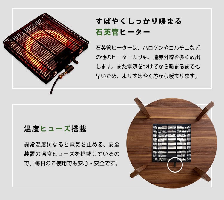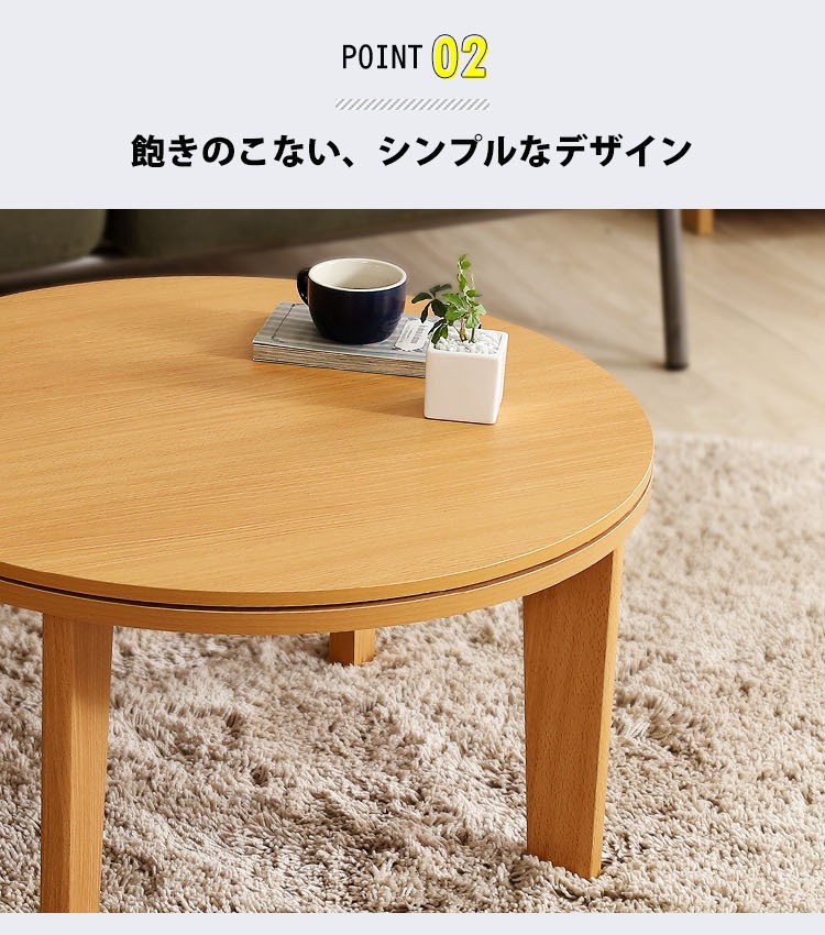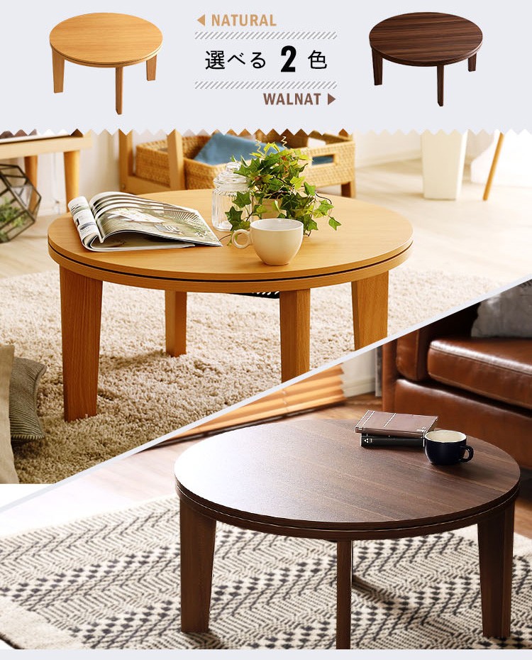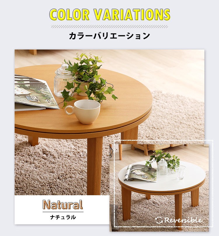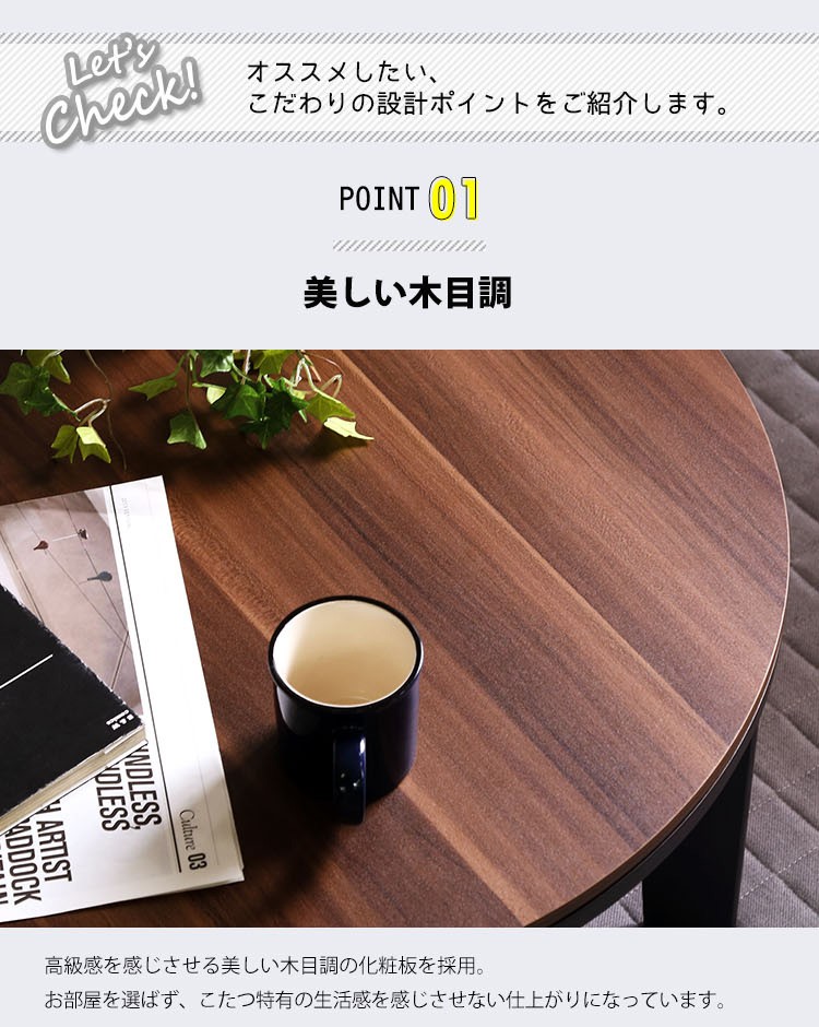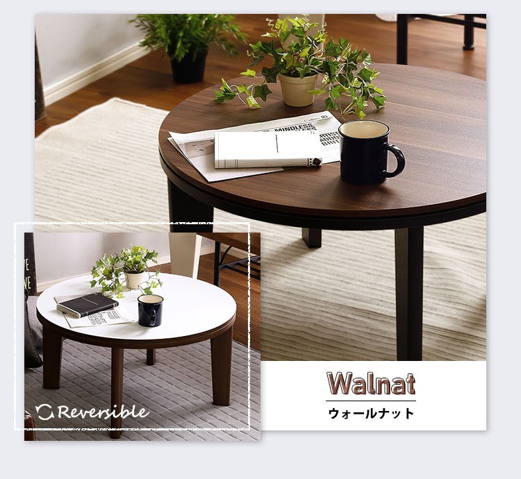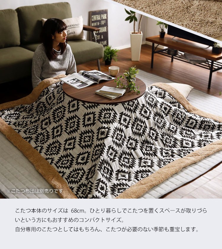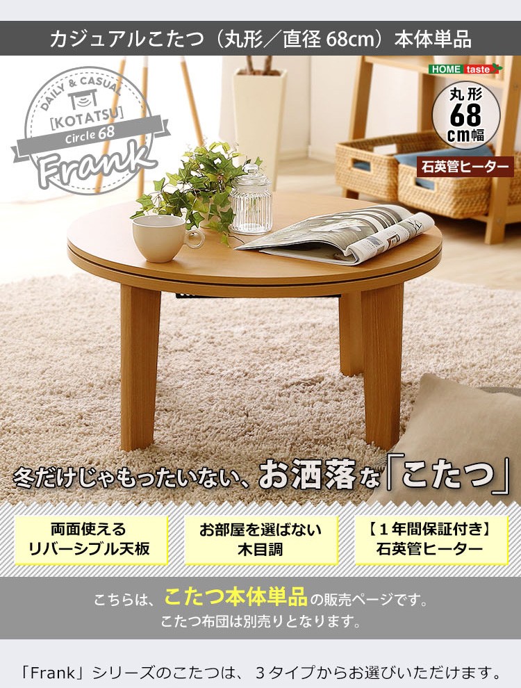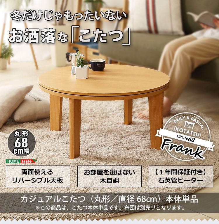 木目調 カジュアル リバーシブル こたつ 68cm幅 丸型 単品【Frank-フランク-】シリーズ [CIRCLE 68]