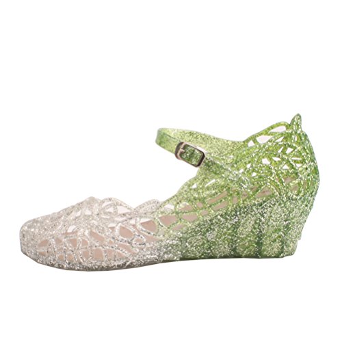 -. Title : OMGard Womens Summer Wedge Glitter High Heels Hollow Jelly Shoes Sandals Ankle Strap Platform