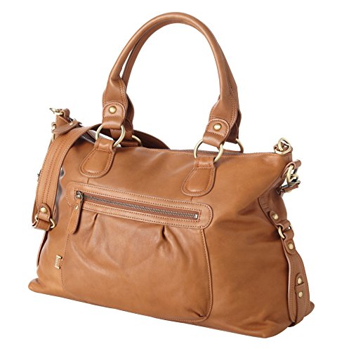 Bellisimo! This fashion forward soft leather slouch tote is the ideal bag for sophisticated moms. You will have trouble convincing your friends it is a baby bag it looks so good. Made from soft, supple distressed lamb leather with lots of storage pockets; it's a bag you'll want to keep forever. This tanned leather has been lightly drummed; a process that allows the leather's natural markings and variations in color to shine through.Feature