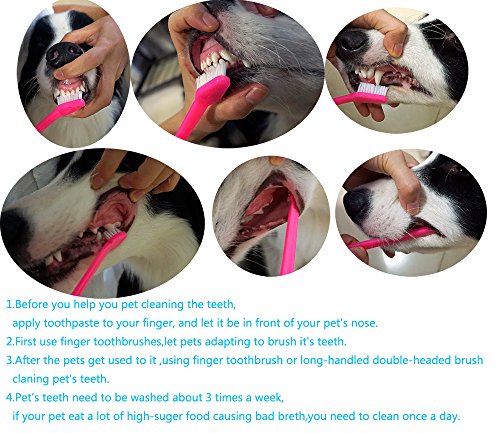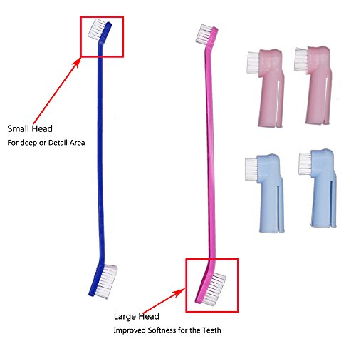 -. Binding : Misc. -. Brand : Jaabyc -. EAN : 0614024687811 -. Feature : [ 2-Sided Style Triangle Head Shaped Design ] Triangle shaped head nicely fits the pets teeth. And the larger head on one end gets the front and main teeth for general cleaning while the smaller end gets into back teeth and corners for a thorough job / [ Soft Bristled to be Gentle on Pet Teeth yet Effective to Give a Good Clean ] The bristles are soft which prevents irritating pets' gums and do not annoy them during the cleaning process. It is gentle and massaging but firm enough to give a good rub / [ 6.3 Inch Long Flexible Handle to Allows for the Maximum Reach ] The long handle and smaller end of the brush allow you to get to those hard to reach places in the back of pets mouth without getting your hand all slobbery and gross / [ Durable and Washable ] This pet toothbrush is easy to clean under running water. They are durable and hold up after many brushings. 2 different colors helps to identify each pet if you have more than one / BUY 2 SAVE 20% ( no coupon necessary)-We love our customers and want them to love us too. If you buy any 2 or more items from our store, you can immediately save 20% at the checkout ( no coupon necessary). Buy for a friend or loved ones and save together. -. Label : Jaabyc -. Manufacturer : Jaabyc -. PackageQuantity : 1 -. ProductGroup : Pet Products -. ProductTypeName : PET_SUPPLIES -. Publisher : Jaabyc -. Studio : Jaabyc -. Title : Pet Dog Cat Toothbrush Set of 4 - Soft Bristle Double-ended Kitten Doggie Puppy Dental Hygiene Brushes for Front & Back teeth and Gum of Small to Large Dogs, Cats, Most Pets, Free 4 Finger Toothbrush -. UPC : 614024687811