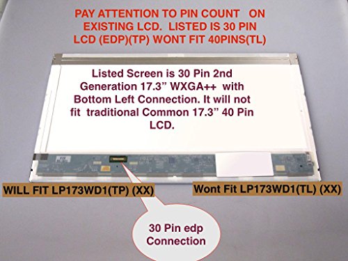 -. Feature : Laptop LCD Screen Size: 17.3 Inches (15.38 x 9.187) / Laptop LCD Screen Resolution: WXGA++ (1600 x 900) / Laptop LCD Screen Type: LED (DIODE) / Laptop LCD Screen Connector: 30 Pins (Bottom Left) / May Contain 3 to 5 Dead Pixels