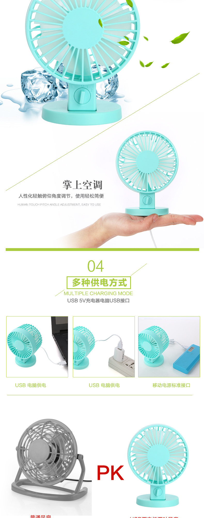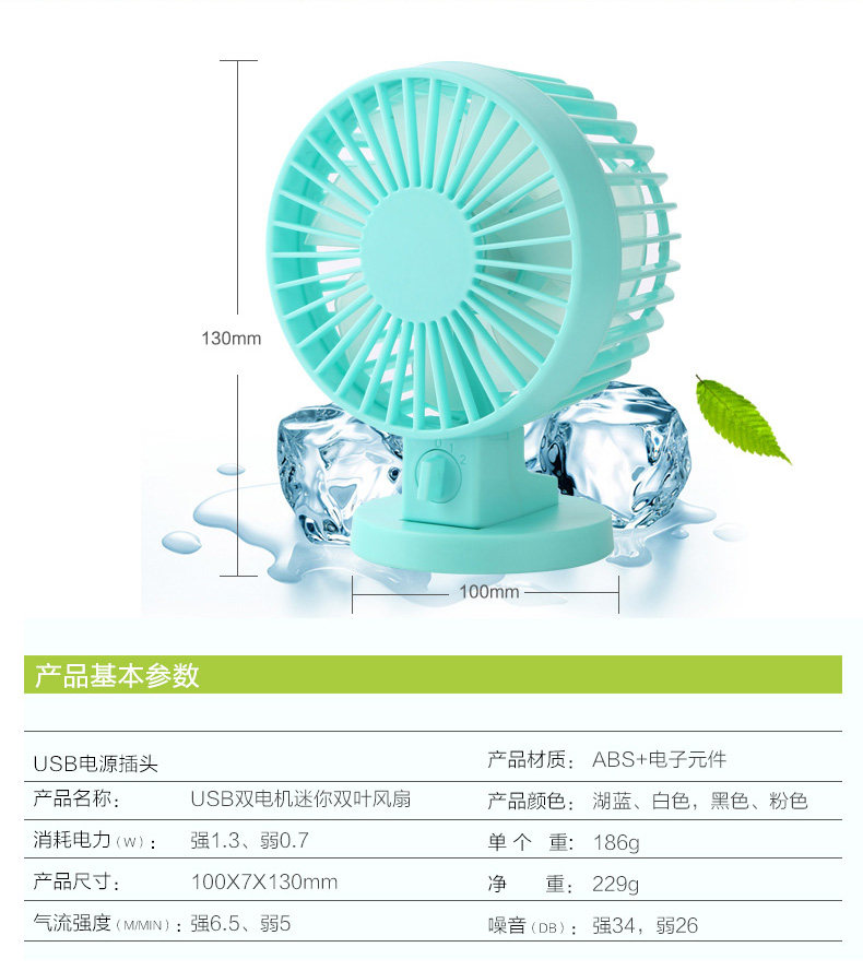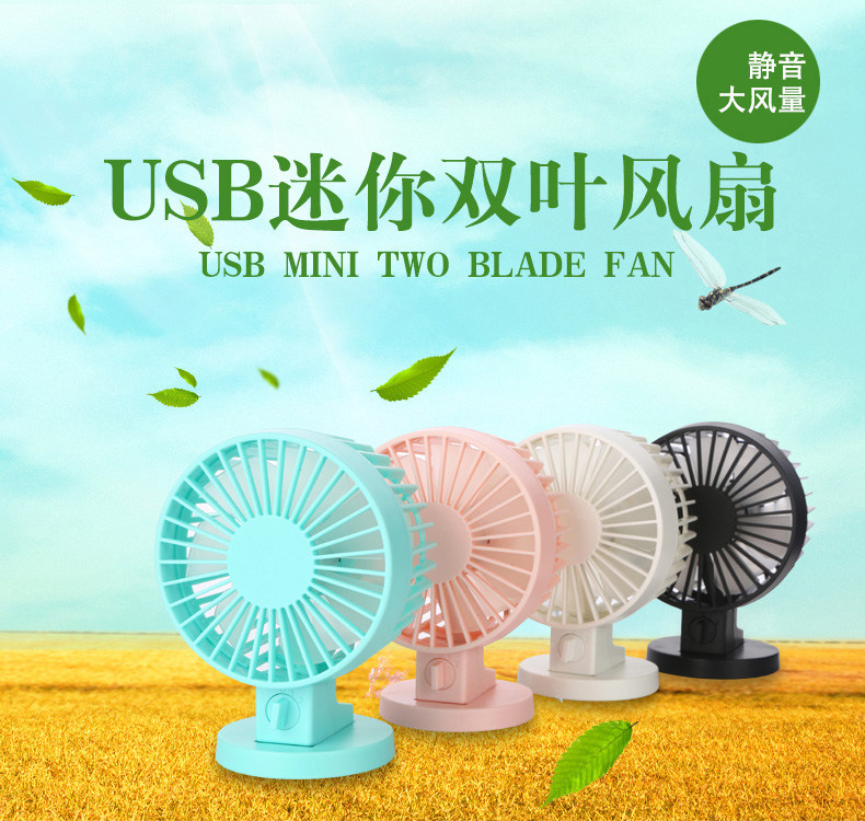 usb风扇双叶风扇 便携式静音迷你风扇 创意办公室桌面电脑小风扇