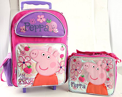 -. Title : Peppa Pig 16" Large Rolling Backpack with Lunch Bag 2pc Sets for Girls
