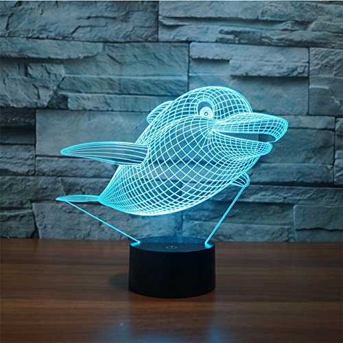 3D Swimming Dolphin Lamp, Optical Illusion Night Light for Nursery / Decor / Bedroom, 7 Colors Changing Toys and Gifts for Kids / Birthday by YKL WORLD
