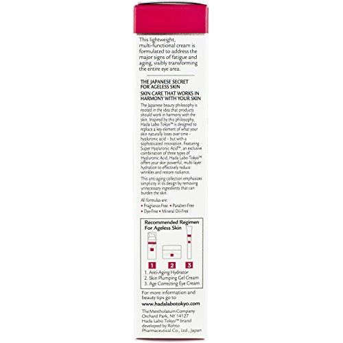 Hada Labo Tokyo Age Correcting Eye Cream 0.5 Fluid Ounce - with Super Hyaluronic Acid, Caffeine, Collagen and Light Diffusing Pigments - lightweight...