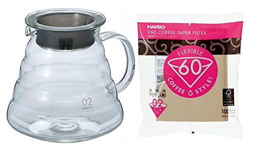 The Hario XGS-60TB Glass Kettle (V60 Series) with Lid and 100 Paper Filters