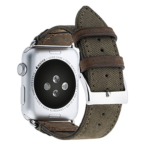 -. Feature : Made specifically for the 38mm Apple Watch Series 1 & Series 2 / Unique Sporty Design to add style to you Apple Watch. Brown Antique Leather interior and dark green fabric exterior. / We used our unique soft genuine leathers for the interior part of the band that touches your skin and added durable corduroy fabric with stylish finish to show of the unique color combination. / The contrasting color combination, brits and fabric & leather lining creates a dramatic two-tone look. It is a reflection of who you are as it records all the dents and scratches forever to make the band your own. / Simple & Easy: Just slide into the apple watch slots. Unobstructed Apple Watch Optical Pulse Sensor (PCB) opening and lightning-fast hassle-free Apple Watch installation & secure fit