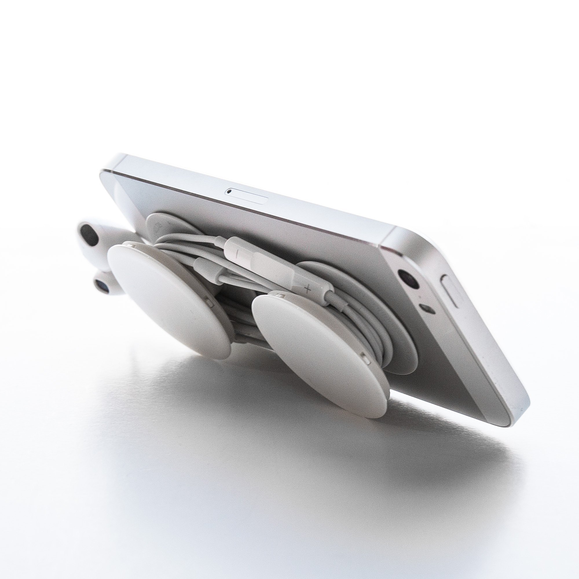 It becomes a stand of a smartphone or a tablet, it becomes a grip, and it is also an accessory which becomes a code wrap of an earphone.