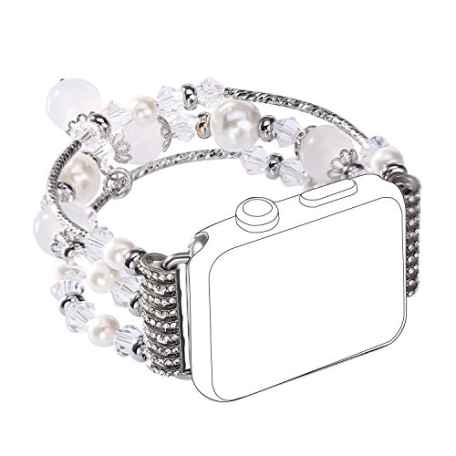 -. Feature : 20mm Band Length:about160-190mm.Easy to adjust the length to fit your wrist / All bracelets passed Pulling Force Test / Compatible for both Apple Watch Series 1 and Series 2 42mm version / Beautiful and impressive handmade pearl bead Apple Watch band. This can be a unique gift idea for any occasion: Christmas, Birthday, Valentines day etc.This strap band stretches to fit, so it will be snug around your wrist. / Made of high quality natural stone, durable elastic rope, unique stylish, smooth, comfortable, feminine