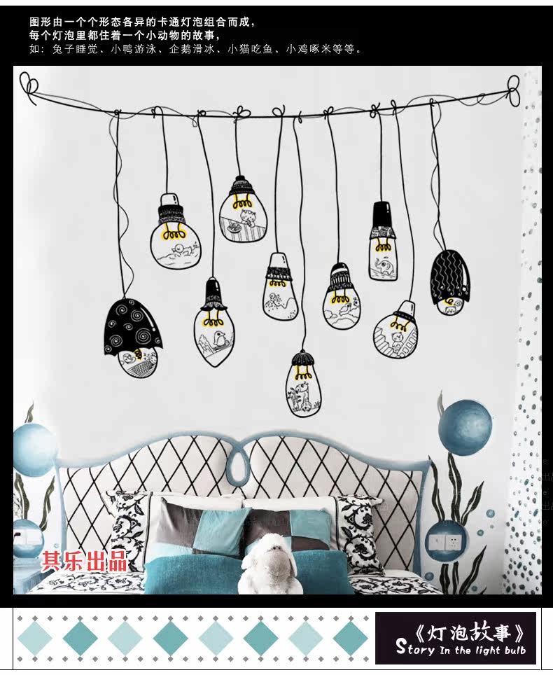 创意动物灯泡卧室客厅背景装饰墙贴纸个性文艺走廊餐厅布置墙贴画