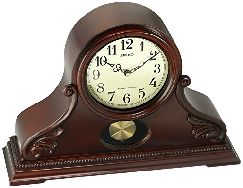 Track time more stylishly with the Seiko Contemporary Classics Tambour Mantle Clock with Pendulum. This mantle clock has an ornate design to help you dress up your decor with a pendulum. It features chimes for every hour and quarter hour, with volume that can be adjusted to your preference. It requires one C battery, which is not included. 12.5H x 17W x 4.75D in.. Wood construction. Dark brown finish. Includes pendulum design. Features quarter-hour and hour chimes. Volume control included. Traditional and transitional style. Requires 1 C battery (not included).Feature