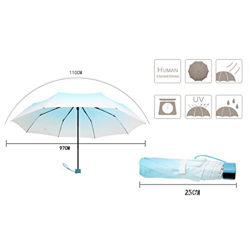 -. Brand : APAS -. Department : unisex-adult -. Feature : Versatile: both a sun umbrella and rain umbrella, windproof, protect you from rains and sun burn / Decent Coverage: spread to 97cm / 38.2" diameter on opening, large coverage and super handy perfect for preventing from sun and rain / Compact: the lightweight umbrella which is ideal for travel and storage conveniently, hardly takes any room in your backpack, tote, purse or suitcase / Well Made: made from sturdy and durable nylon canopy with strong steel framework ensures for a sturdy, windproof construction / Great Gift: comes with a matching sleeve for easy storage, a nice Christmas Birthday Holiday gift for boys, girls, students,kids, ladies and more -. Model : LT10-0006 -. ProductGroup : Apparel -. ProductTypeName : LAGE -. Title : APAS Creative Gradient 3 Folds Compact Anti-UV Sun Rain Umbrellas