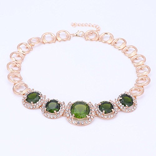 -. Feature : Women's Gold Plated Green Zirconia Crystal Jewelry Set Necklace Bracelet Ring Earrings / Suitable for everyday,wedding,party,anniversary,birthday,Christmas wear. / Size:look at picture / Including 1 necklace + 1 bangle+1 ring + a pair of earrings / It usually takes 6 to 15 business days for delivery.