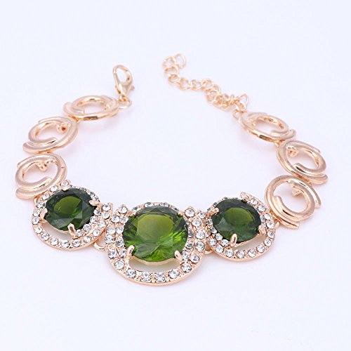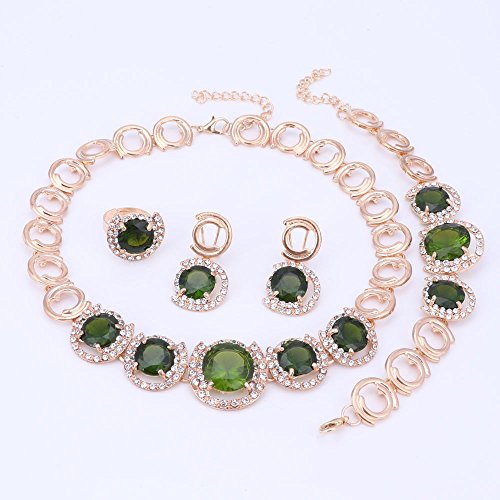 -. Title : Women's Gold Plated Green Zirconia Crystal Jewelry Set Necklace Bracelet Ring Earrings