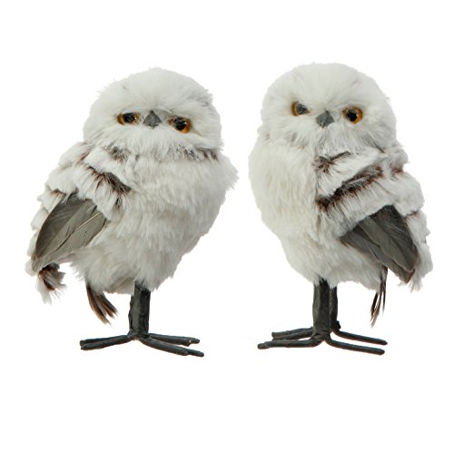 Set of 2 Assorted RAZ Imports Furry White Owl Figurines - 5" x 3"