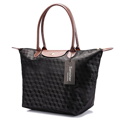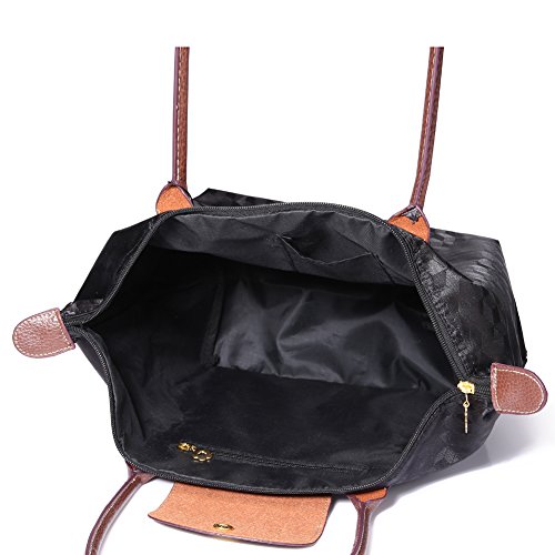 -. Feature : High quality and lightweight Waterproof NYLON, strong PU leather handle, fully lined with dark fabric / Very lightweight, less than 13 ounces. Spacious, fit up to 14"-15.6 " laptop. / Large Size:Length: 20.5"; Height: 12.6"; Width: 8"; Handle Drop: 8"; Medium Size: Length: 17.3"; Height: 11.8"; Width: 7"; Handle Drop: 8"; / Features a zippered main compartment, two interior slip pockets and one interior zipper pocket to organize your essentials / Folds into a compact shape for travel and storage. Perfect for shopping, school, work, travel or any other daily occasions