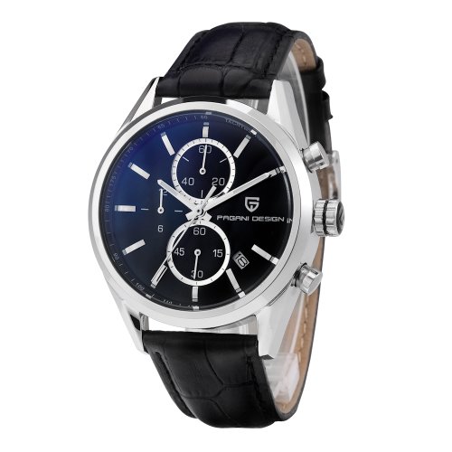 -. Feature : PAGANI DESIGN CX-2513CBKR / 電池式ムーブメント、クロノグラフ / 日付表示 / 防水機能:3ATM / レザーケース付